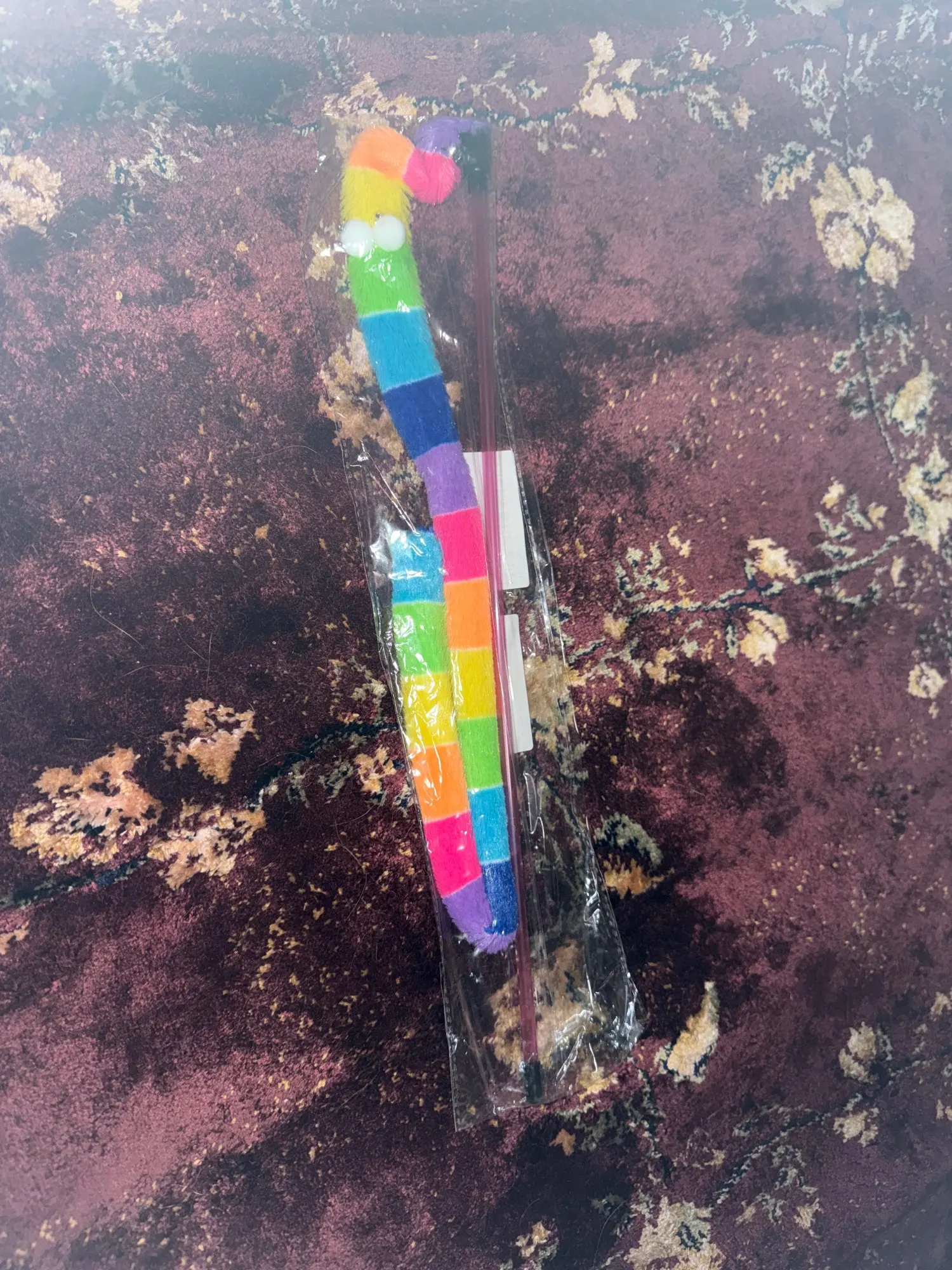 Engage your cat's natural hunting instincts with this interactive feather teaser wand. Featuring a plush gradient caterpillar design and a jingling bell, the flexible plastic rod captures feline attention instantly while encouraging active play. The lightweight construction makes it easy to maneuver for interactive sessions that strengthen your bond. Ideal for 5–10 minute play periods to keep your cat entertained and mentally stimulated without overstimulation. A practical addition to any cat owner's toy collection.